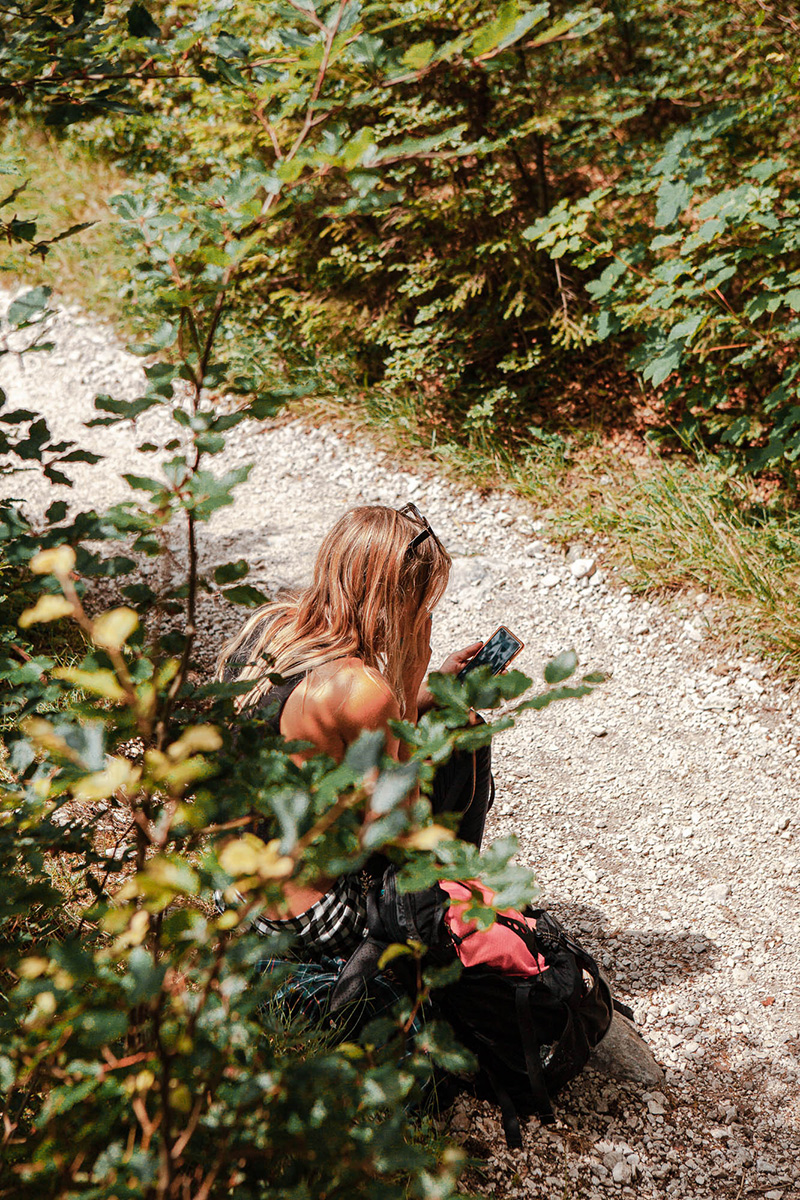 Am Ende des Stollens spaltet sich der Berg und offenbart die unumstößliche Schönheit dieser Klamm. 700 m lang und bis zu 80 m tief. Wild und furchtlos stürzt das Wasser durch die Felsen. Es ist dunkel und frisch. Das Rauschen präsent. Moosgeruch und Feuchtigkeit steigen in die Nase, Sprühnebel erfrischt die Gesichter, von den Wänden tropft es unablässig. Der Weg, an der linken Seite mühevoll in den Stein gehauen und mit Drahtseilen gesichert, schlängelt sich die Gischt entlang.